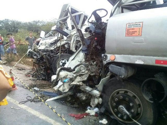Um choque entre dois caminhões deixou duas pessoas mortas e quatro feridas na manhã desta sexta-feira na PE 280 em Sertânia, próximo a campo de pouso da cidade. O acidente envolveu um caminhão-tanque e outro de uma empresa de material de construção.