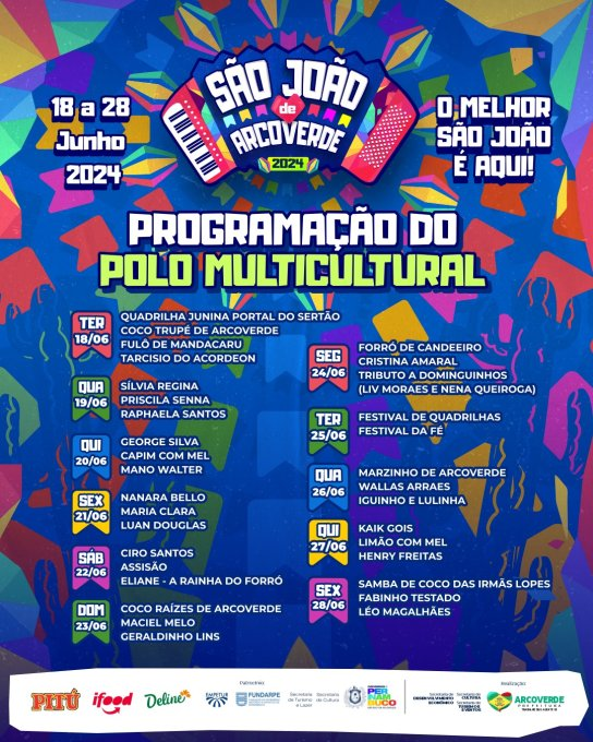 Confira abaixo a programação do Polo Multicultural do São João 2024: