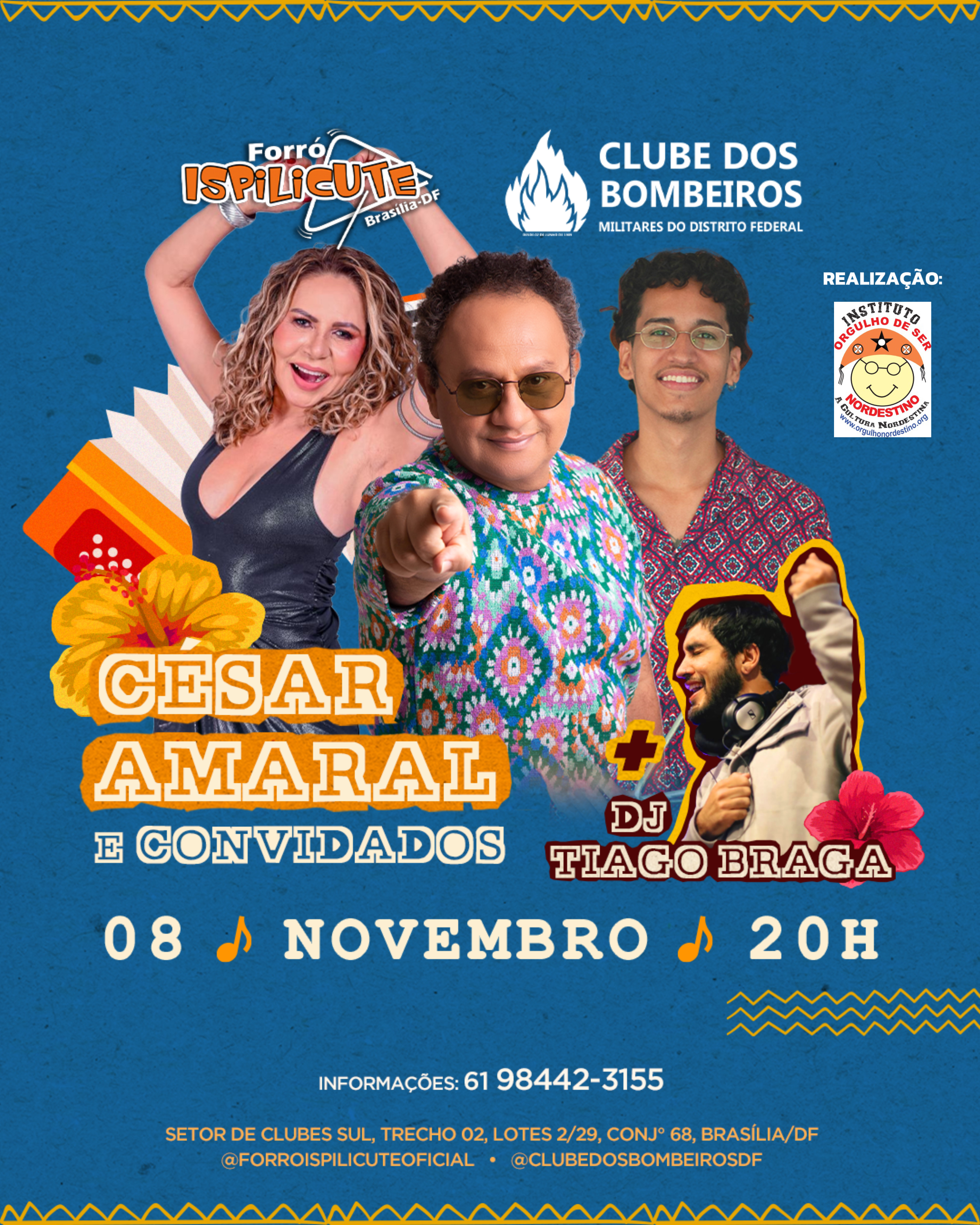 O cantor e compositor César Amaral vai participar do Projeto Forró do Ispilicute em Brasília (DF). A apresentação será no dia 8 de novembro no projeto que movimenta o cenário musical da Capital Federal há mais de 18 anos.