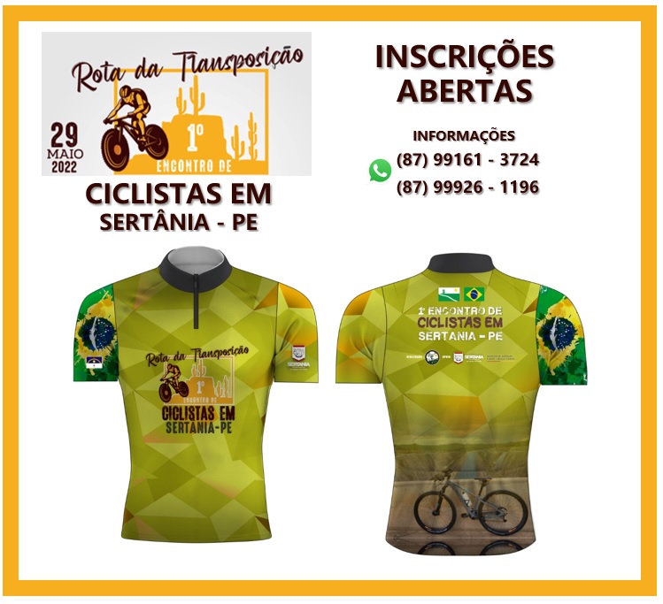 A Rota da Transposição I Encontro de Ciclistas em Sertânia, que já esta com inscrições abertas, será organizada pelo Pedala 1000 com o apoio da Prefeitura Municipal de Sertânia. O evento acontecerá no dia 29 de maio de 2022 dentro da programação alusiva aos 149 anos de Emancipação Política da cidade.