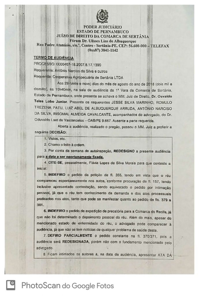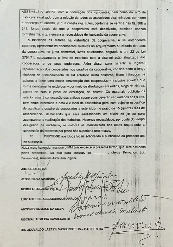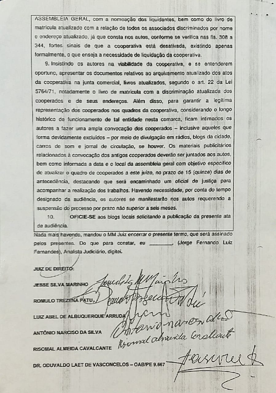 O juiz da Comarca de Sertânia, Osvaldo Teles Lobo Junior, solicitou, através de ofício a publicação de decisão de audiência envolvendo a Cooperativa Agropecuária de Sertânia.