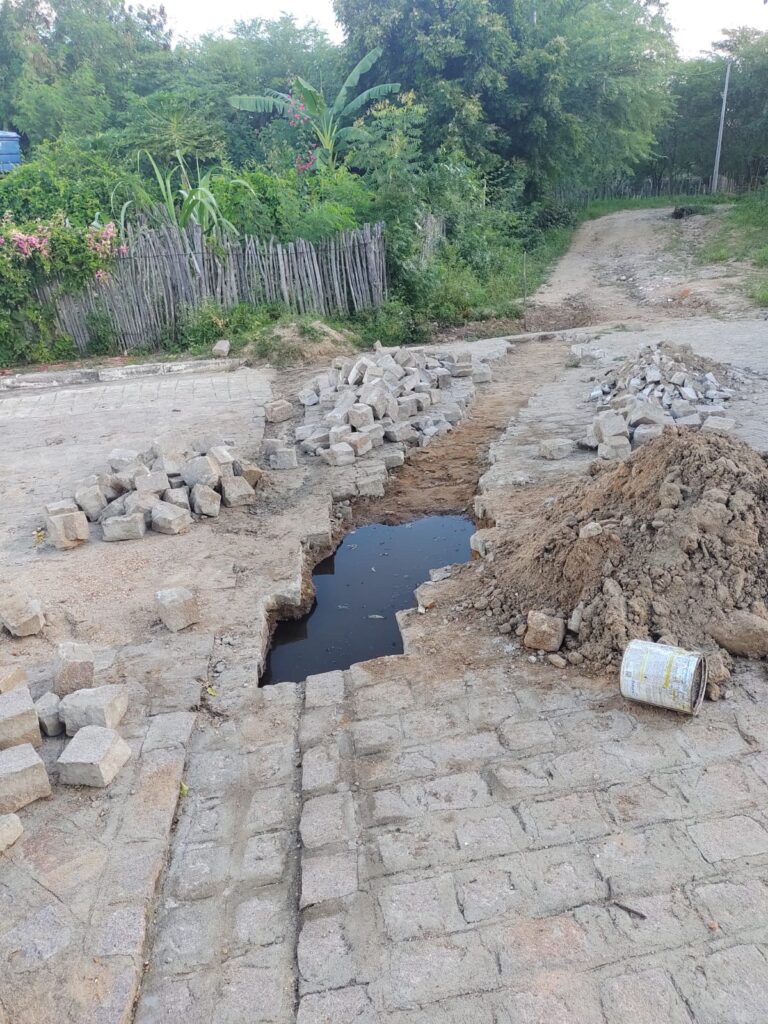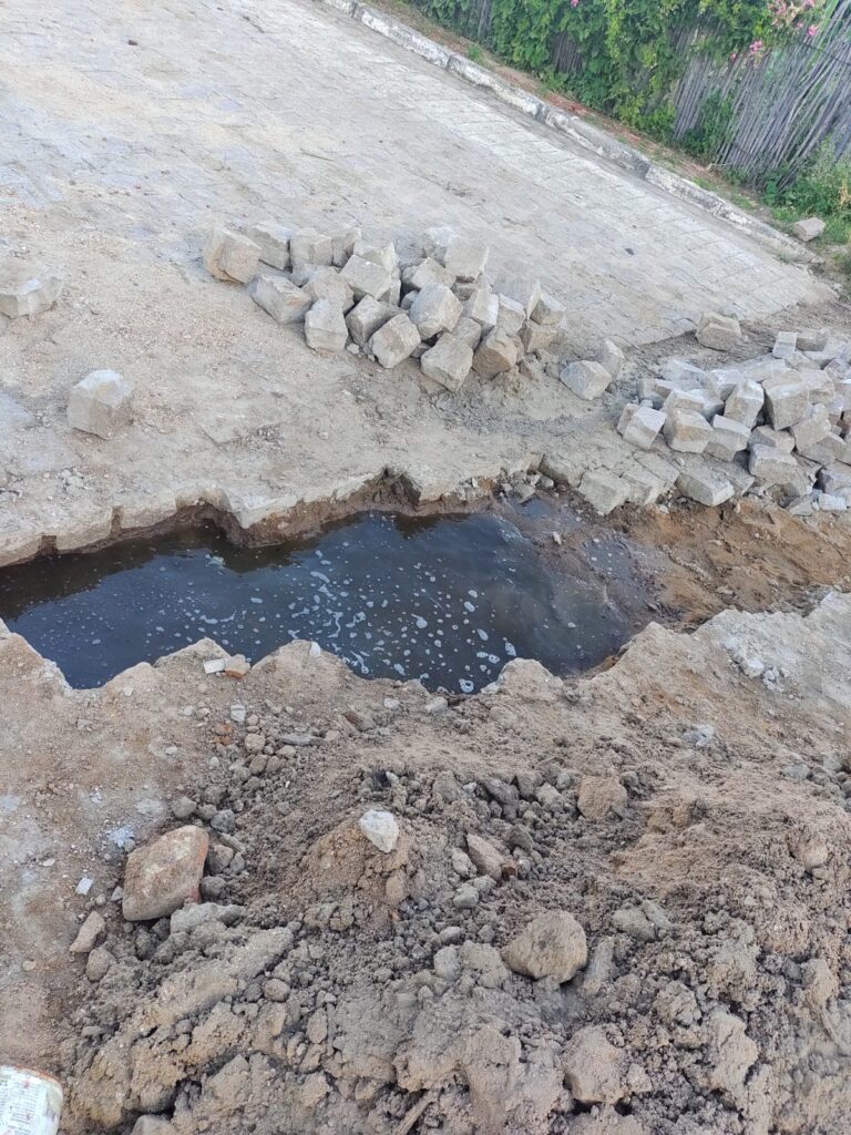 Segundo a reclamação, o problema aconteceu após uma intervenção da prefeitura que abriu o calçamento de uma das ruas da localidade para realizar um serviço, mas não concluiu a obra e deixou o esgoto exposto.