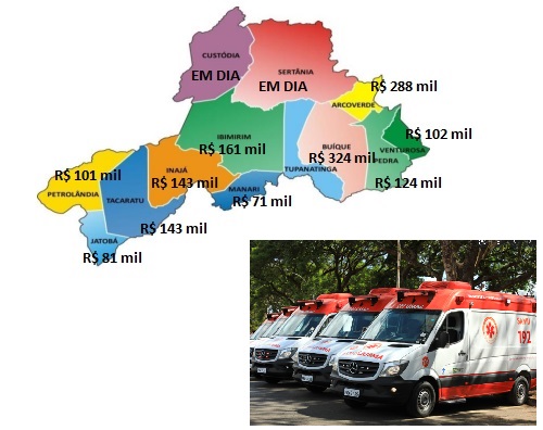 Ainda na lista, Ibimirim, com R$ 161 mil, Tacaratu, com R$ 143 mil, Inajá, R$ 130 mil, Pedra, com R$ 124 mil, Venturosa, com R$ 102 mil, Petrolândia, com R$ 101 mil, Jatobá, com R$ 81 mil e Manari, com R$ 71 mil. Só Custódia e Sertânia estão em dia.