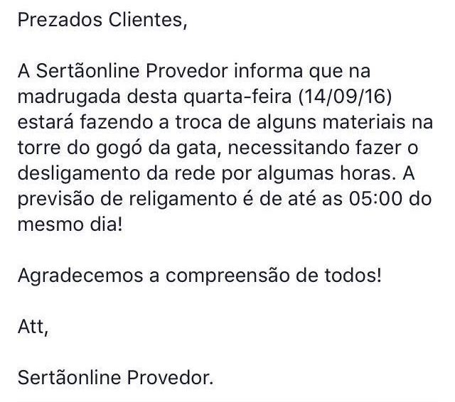 Nota do provedor Sartãonline Post publicado:13 de setembro de 2016 Compartilhe isso:Clique para compartilhar no WhatsApp(abre em nova janela)Clique para compartilhar no Telegram(abre em nova janela)Clique para compartilhar no X(abre em nova janela)Clique para compartilhar no Facebook(abre em nova janela)Clique para imprimir(abre em nova janela) Deixe um comentário Cancelar respostaVocê precisa estar conectado para publicar um comentário.