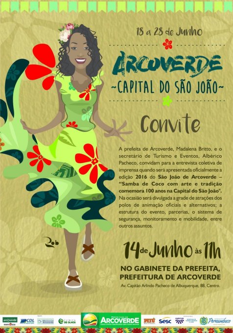 A Prefeita Madalena Britto realiza coletiva de imprensa nesta terça-feira (14), às 11h, no gabinete na sede da Prefeitura de Arcoverde. Na pauta, será apresentada oficialmente a edição 2016 do São João de Arcoverde, que, este ano, tem como o tema: “Samba de Coco com arte e tradição comemora 100 anos na Capital do São João”.