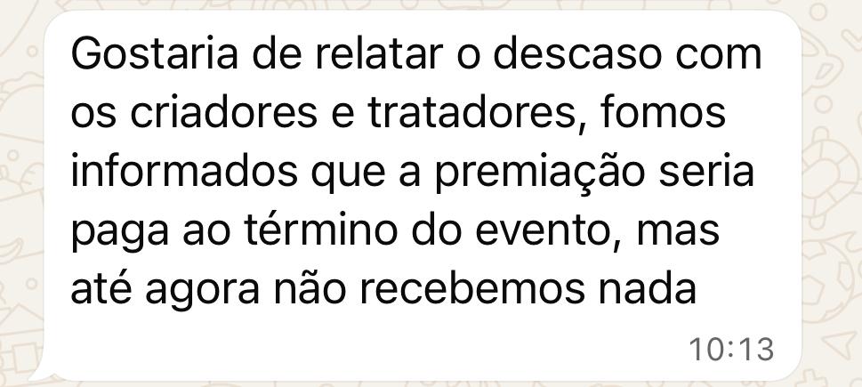 “A gente investe tempo e dinheiro para cuidar dos animais com esperança de reconhecimento e volta de mãos vazias. O que recebi foi uns troféus que parecem de papelão. O pior é que ninguém da prefeitura dá um satisfação.”, comentou um tratador que pediu para não ser identificado por medo de represálias.