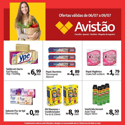 Esta semana o Avistão Supermercado tem ofertas imperdíveis para você. Os preços são válidos até o dia 09 de julho ou enquanto durar o estoque. Confira: