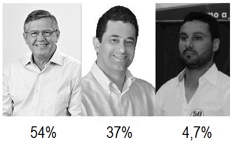 De acordo com levantamento estimulado, em que são oferecidas as opções de voto para o entrevistado, ele tem 54% das intenções de voto contra 37% do atual prefeito e 4,7% de Júlio César Leite. Neste cenário estimulado, 4,3% não sabem ou não opinaram.