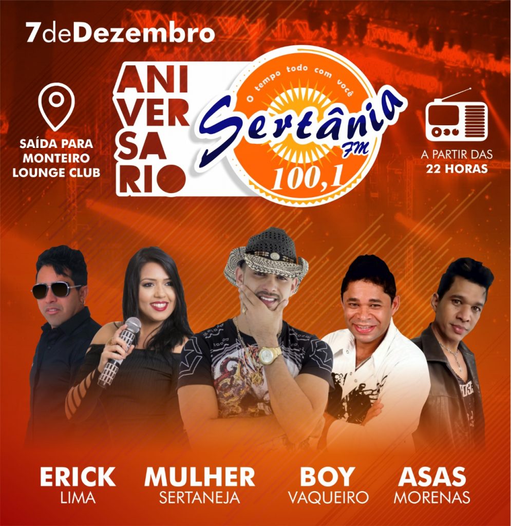 A festa acontecerá com uma super estrutura na próxima sexta-feira (07/12), no Lounge Club, na saída para Monteiro, novo espaço para realização de eventos em Sertânia, e terá como atrações Erick Lima, Mulher Sertaneja, Boy Vaqueiro e Asas Morenas.
